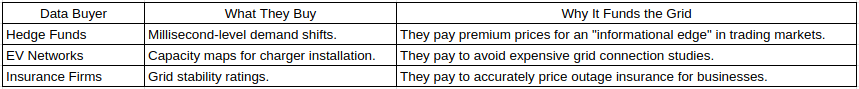 To make this sustainable, the value of the data must exceed the cost of the rewards. By capturing value from these external actors, the grid is no longer solely reliant on the ratepayer. The "data layer" subsidizes the "physical layer."